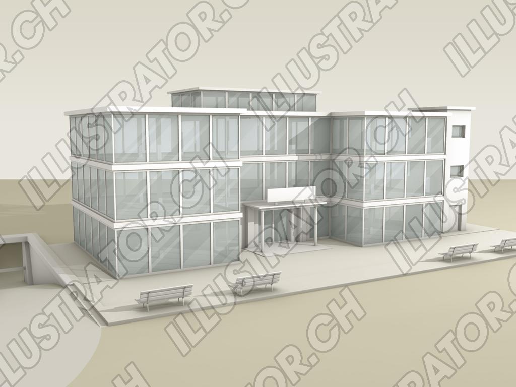 Tags: 3D Haus Gebäude technisch Visualisierung Bürogebäude Büro Gelände