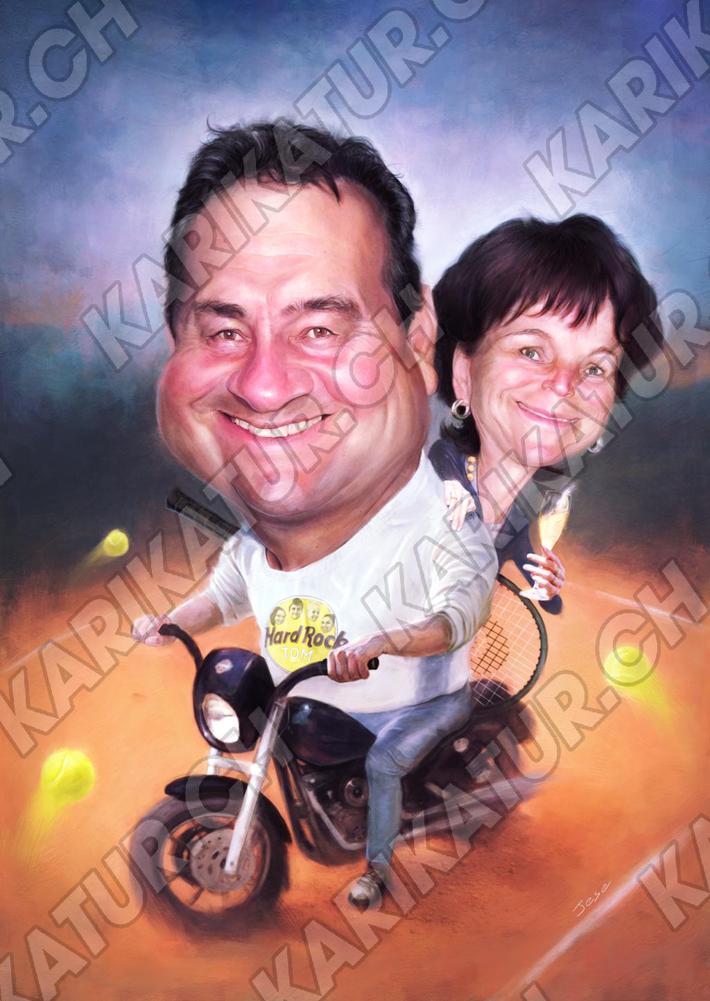 Tags: Hochzeit Karikatur Geschenk Jubiläum lustig Portrait Motorrad Tennis