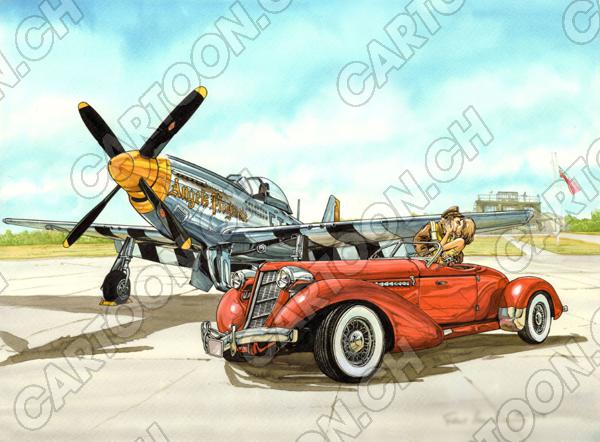 Tags: Landschaft farbig Auto Liebespaar Flugzeuge Kuss Cover Titelbild Aquarell Flugplatz Oldtimer