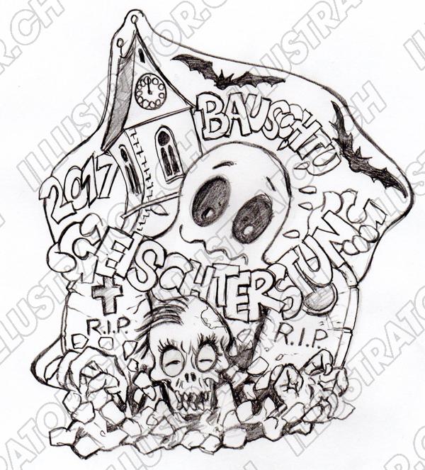Tags: Halloween gruselig Fasnachtsplakette Geister Grab Totenkopf Zombie Spuk