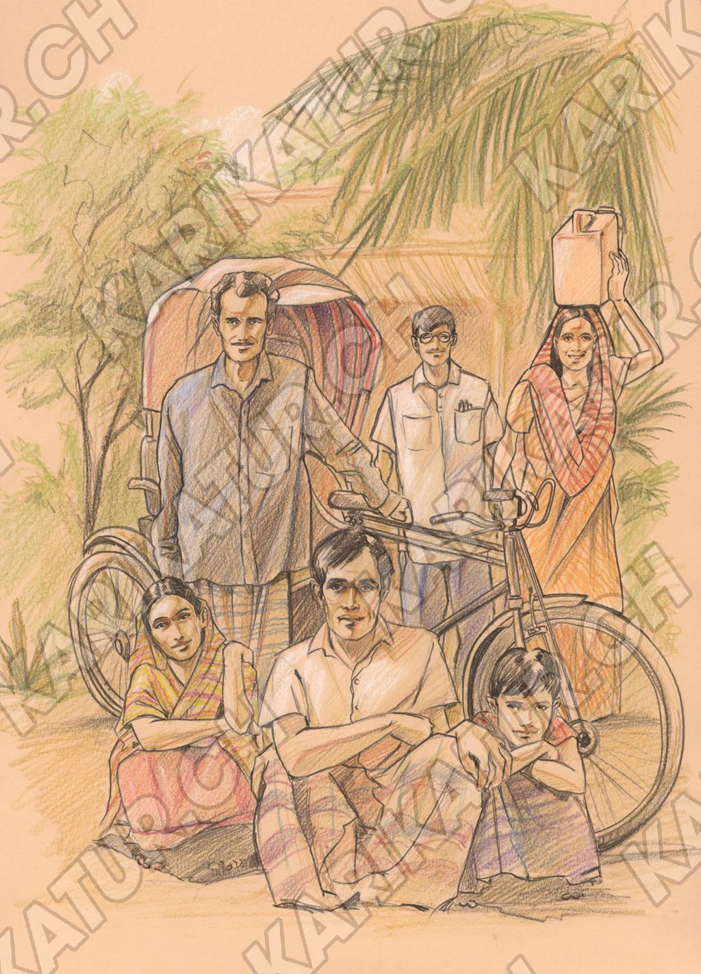 Tags: Fahrrad Velo Familie Illustration Portrait bunt realistisch 3.Welt Entwicklungshilfe Bangladesh