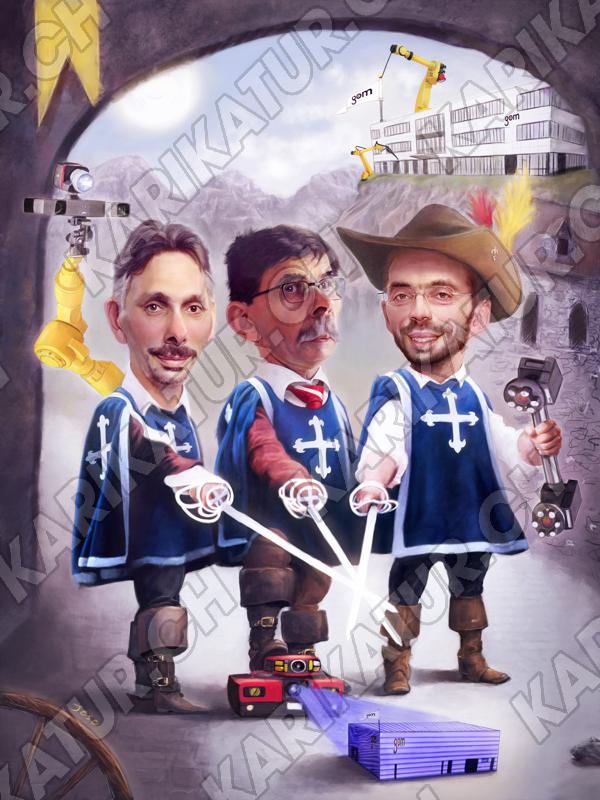 Tags: Firma Geburtstag Karikatur Geschenk Jubiläum lustig Portrait 3 Musketiere