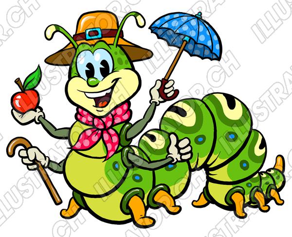 Tags: Character Figur Kinder lustig farbig Tier herzig Hut Kinderillustration bunt Logo süss nett lieb Lehrmittel Titelbild Apfel Schirm Kinderbild KiTa Raupe Pädagogisch