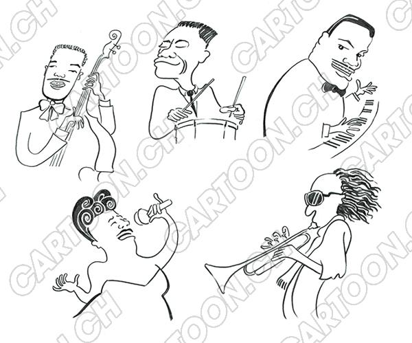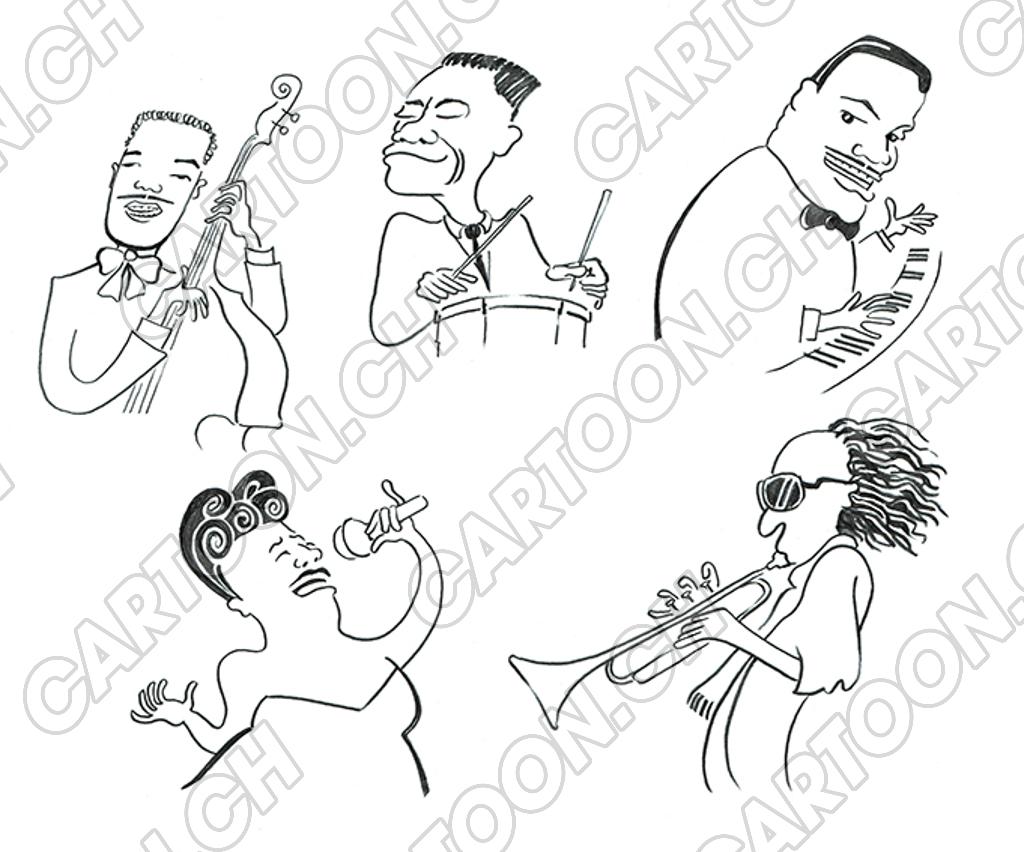 Tags: Musik Karikatur Instrument Konzert Musiker Jazzers Jazz Miles Davis Ella Fitzgerald Oscar Peterson Komponist Entertainment