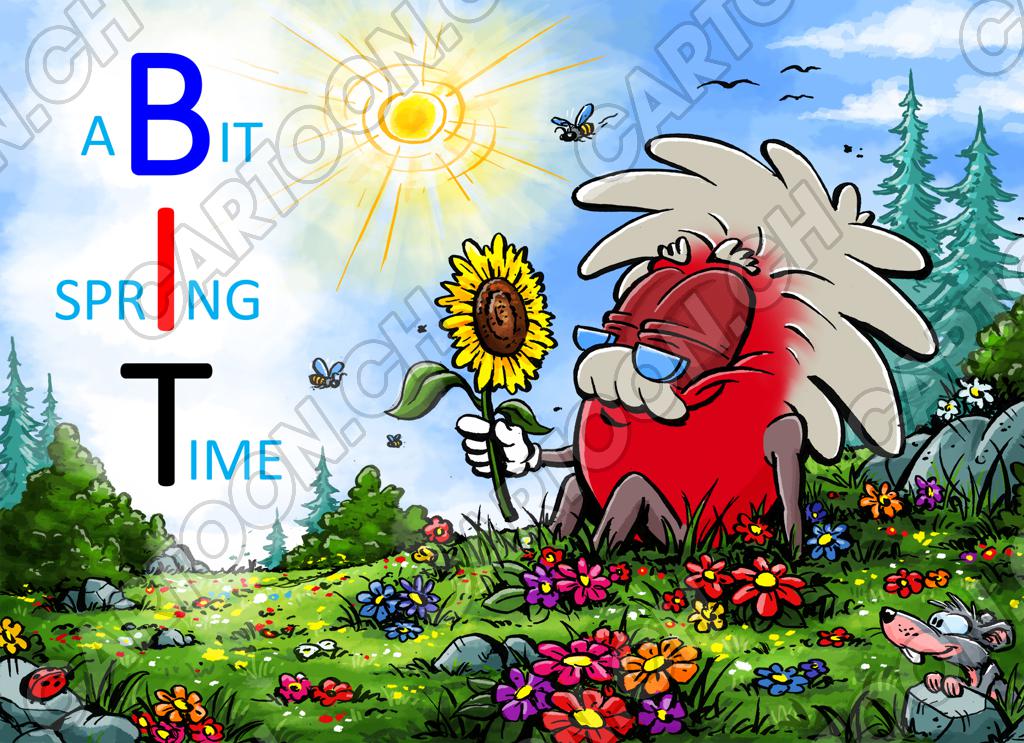 Tags: Character Charakter Karte Postkarte Einstein Cartoon Werbung Blumen Design Wiese Lustig Fröhlich Frühling Bienen Sonne Farbig Bunt Maskottchen Werbefigur Spring Professor Warm