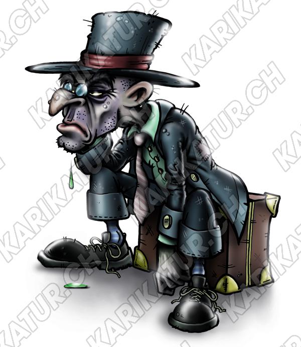 Tags: Character Charakter Figur Karikatur Mensch Person Hut Koffer