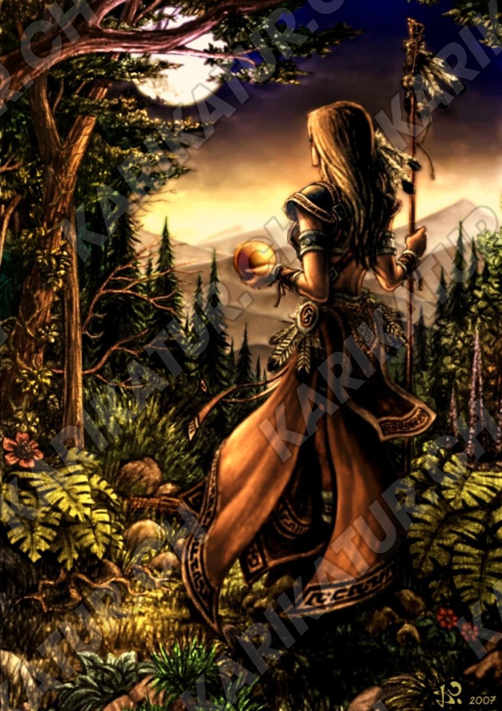 Tags: Fantasie Fantasy Mystisch Mystik Magie magisch Aussicht Schamanin Natur Kugel Stab